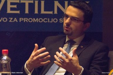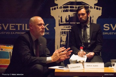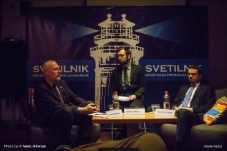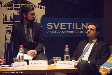 Yesterday I was invited to photograph the event titled “The mirror of Democracy” wich was organized by društvo Svetilnik, whose aim is to promote ideas of liberty. The event was quite interesting because the two guest speakers: president of the national assembly dr. Milan Brglez (SMC is politically supposedly mid-left) and mag. Matej Tonin from NSi (politically supposedly mid-right party, calling themselves christian democrats). They had an interesting discussion of where we are in Slovenia as a democracy, and how to proceed… Although I anticipated that mag. Tonin would be pro markets, it was interesting for me to hear from both of them, that they wouldn’t mind a lot of things to get into more market setting with an interesting twist. Dr. Brglez intrestingly favoured education to remain publicly funded and owned with possibility fot more private institutions, while he was open to let Medical System loose into market economy. I honestly haven’t anticipated that. While mag. Tonin did say, that he deems healthcare to be more important than education, he proposed more competition amongst insurance companies for medical insurance.